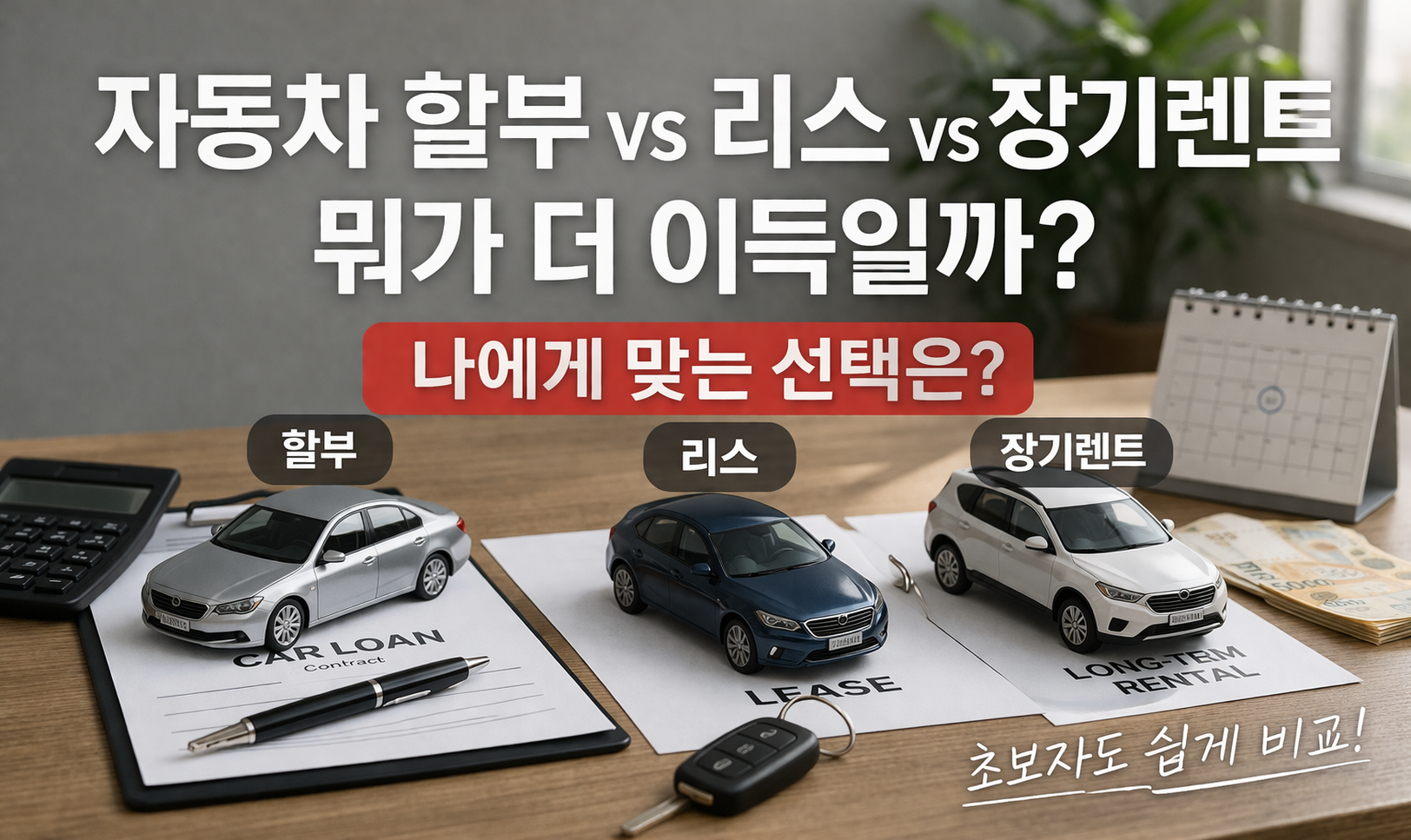 자동차 할부 vs 리스 vs 장기렌트, 뭐가 더 이득일까? 상황별로 쉽게 정리해드립니다