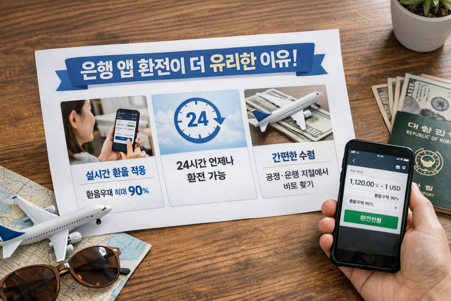 출국 며칠 전에 앱에서 환전 우대율을 확인하고, 원하는 통화를 신청한 뒤 가까운 지점이나 지정 수령점에서 찾는 방식입니다. 이렇게 하면 급하게 공항에서 바꾸는 것보다 훨씬 마음이 편하고 비용도 줄이기 쉽습니다.