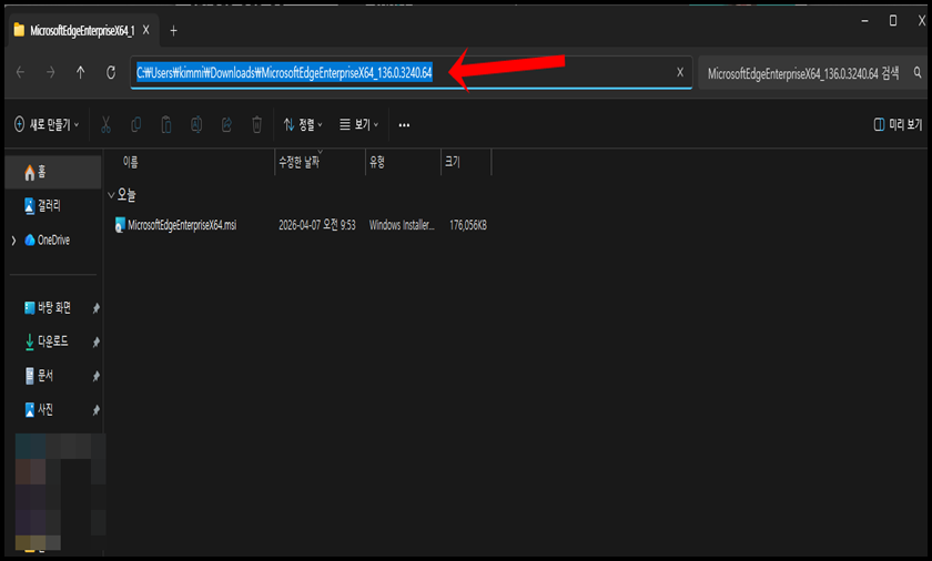 자. 파일이 다운로드되었다면, 압축을 해지 후, msi 파일 경로를 복사해 주세요.