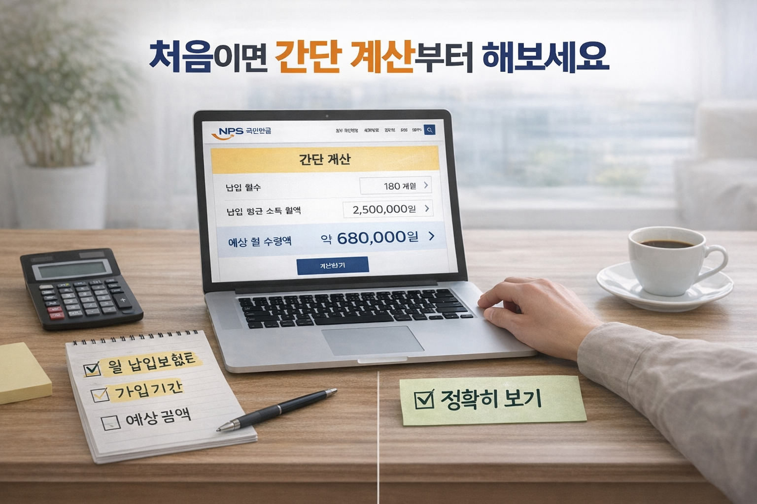 - 처음이면 로그인 없이 예상연금 모의계산부터 해본다