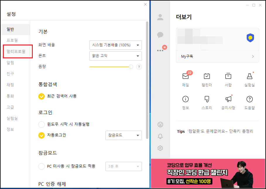 설정 메뉴로 들어가시면 기존에 없었던 [멀티 프로필] 메뉴를 확인하실 수 있는데, 선택해서 들어가 주세요.