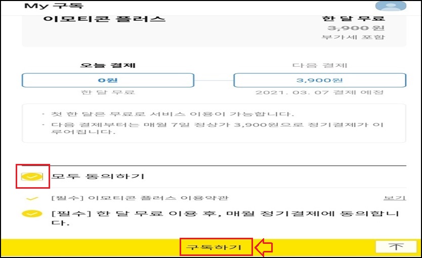 "모두 동의하기"버튼을 클릭 후 "구독하기"를 눌러주세요.