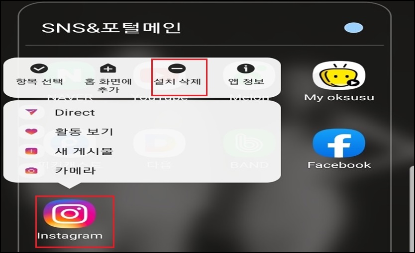 우선 인스타그램 어플을 삭제를 진행해주세요.
