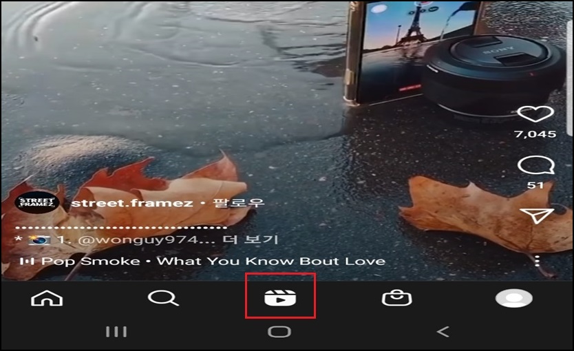 기존 업데이트된 인스타를 실행해보면 + 메뉴가 있던 곳이 릴스 아이콘이 자리잡고있어요. 이 릴스를 한번 없애보도록 할게요.