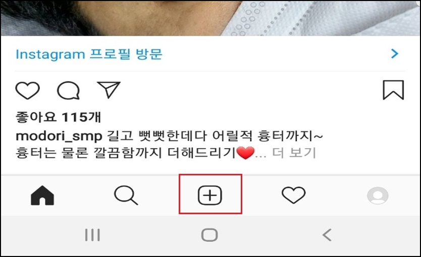인스타그램 접속 후 인스타 릴스는 없어졌고 기존의 + 메뉴를 확인할 수 있어요.