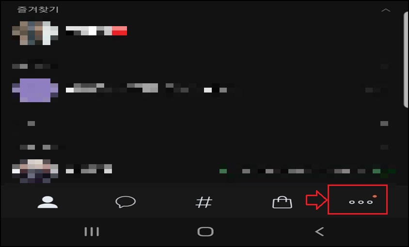 우선 카카오톡을 실행후 하단의 ... 메뉴를 클릭해주세요.