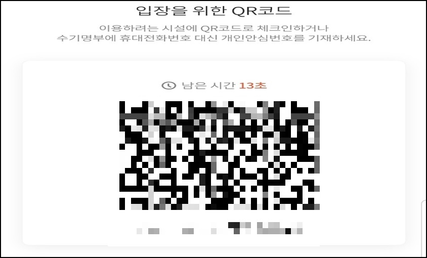 짜잔!! 이제 스마트폰에서 카톡을 실행후 스마트폰을 흔들기만 하면 QR코드가 실행되어 전자출입명부에 쉽게 통과하실수 있어요^^.