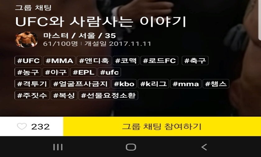 위 헤쉬 태그를 통해 나와 관심사가 비슷한지 파악 후 채팅방에 입성하고 싶으시면 [그룹 채팅 참여하기] 버튼을 클릭해주세요.