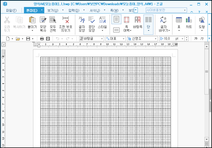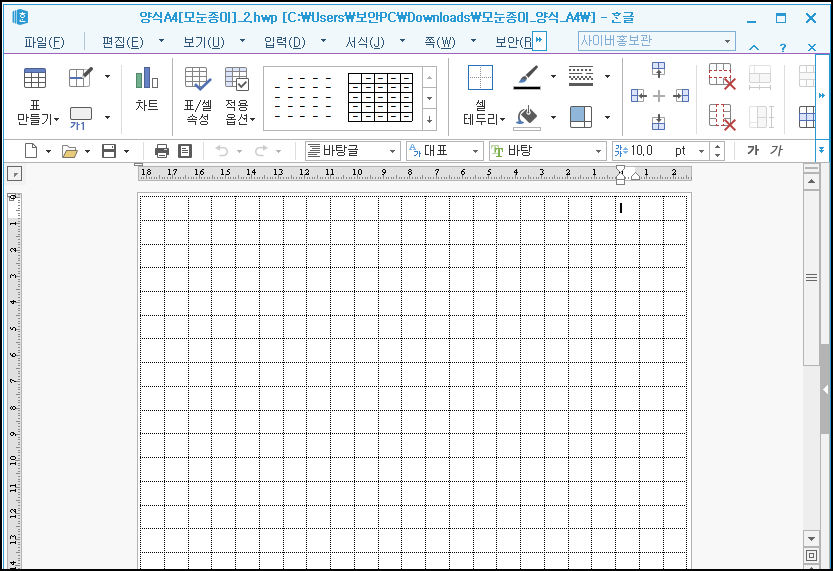 [한컴오피스] 한글 모눈종이 양식 다운로드 파일