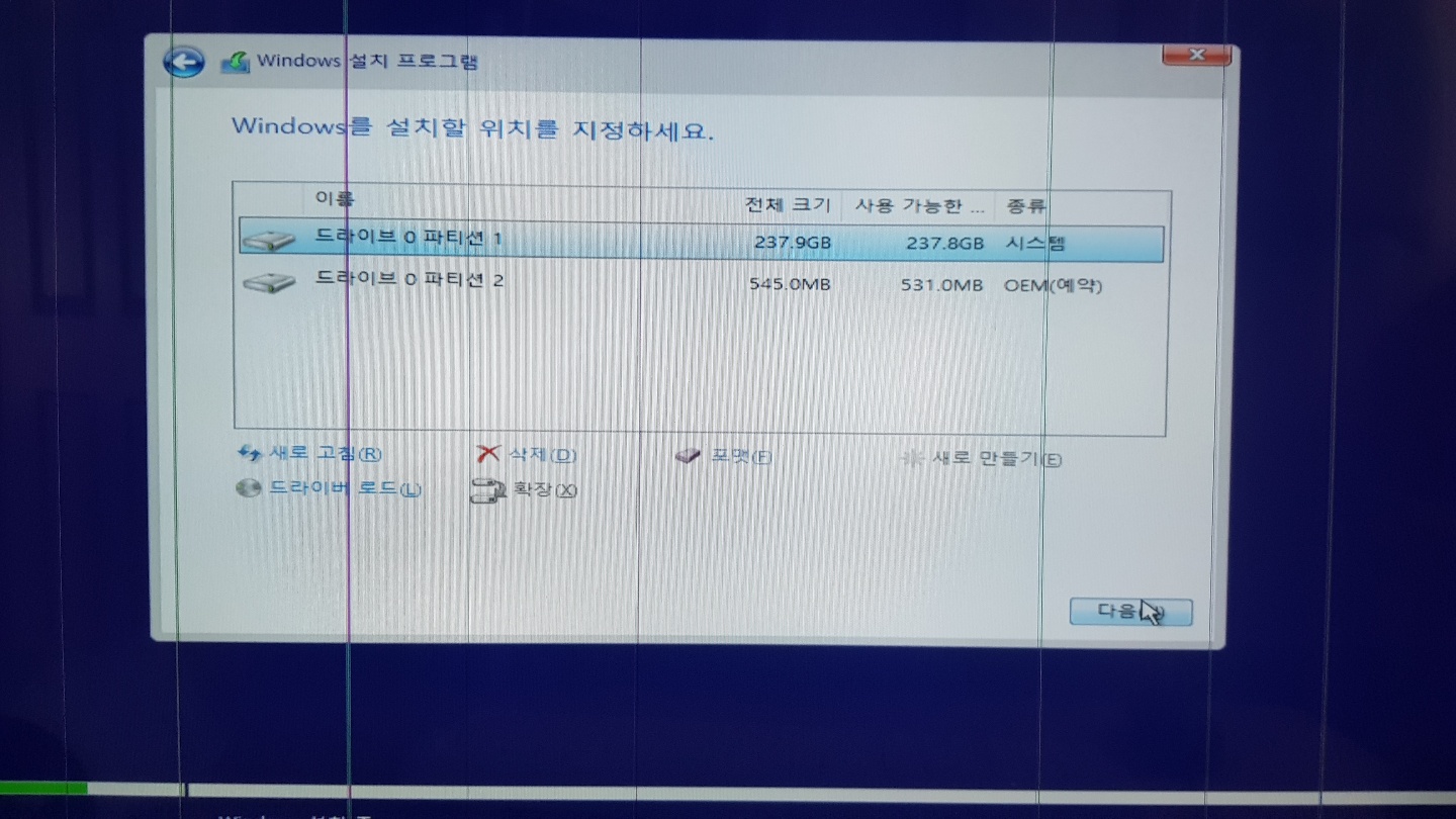 드라이브 파티션을 전체 포맷을 진행해주세요.