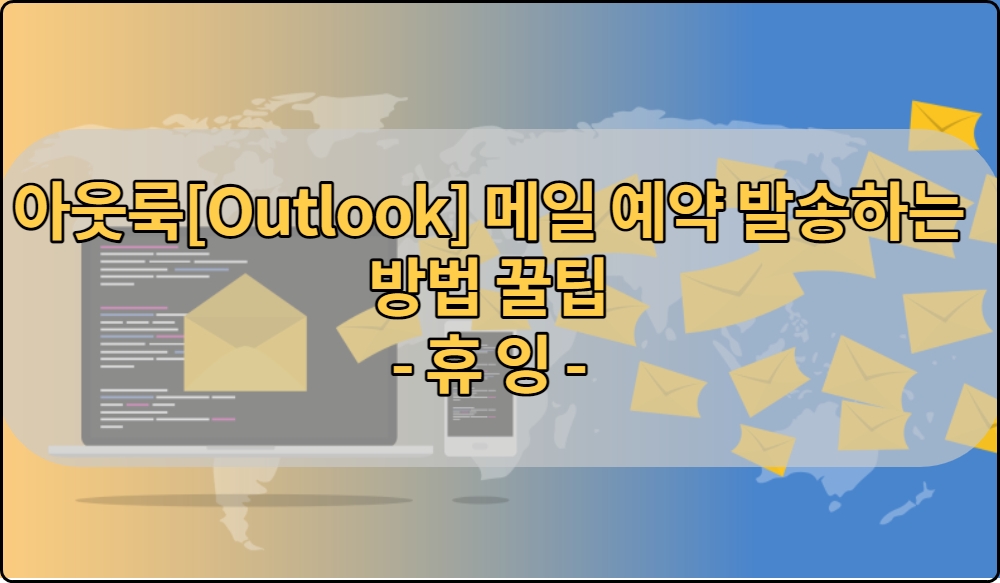 안녕하세요 오늘도 휴잉의 블로그를 찾아주셔서 감사해요. 오늘 제가 포스팅할 내용은 "아웃룩[Outlook] 메일 예약 발송하는 방법 꿀팁"에 대해 포스팅 해보려고해요. 아웃룩 메일을 이용하는 경우 정해진 시간에 메일을 발송해야 하는 경우가 있는데, 출장이나 급한 일정으로 인해 재 시간에 메일을 발송하지 못하는 경우가 발생할 수가 있죠. 바쁜 업무로 인해 깜빡할 것 같다면 미리 예약 발송 설정을 통해 업무에 차질이 생기지 않도록 하는 것도 하나의 방법인 것 같아요.