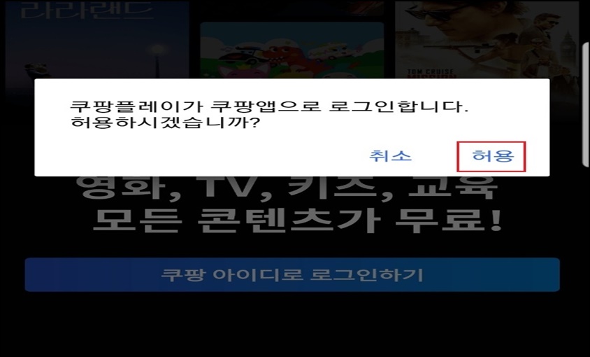 "쿠팡 플레이가 쿠팡 앱으로 로그인합니다"라는 메시지가 나오면 [허용]을 클릭해주세요.