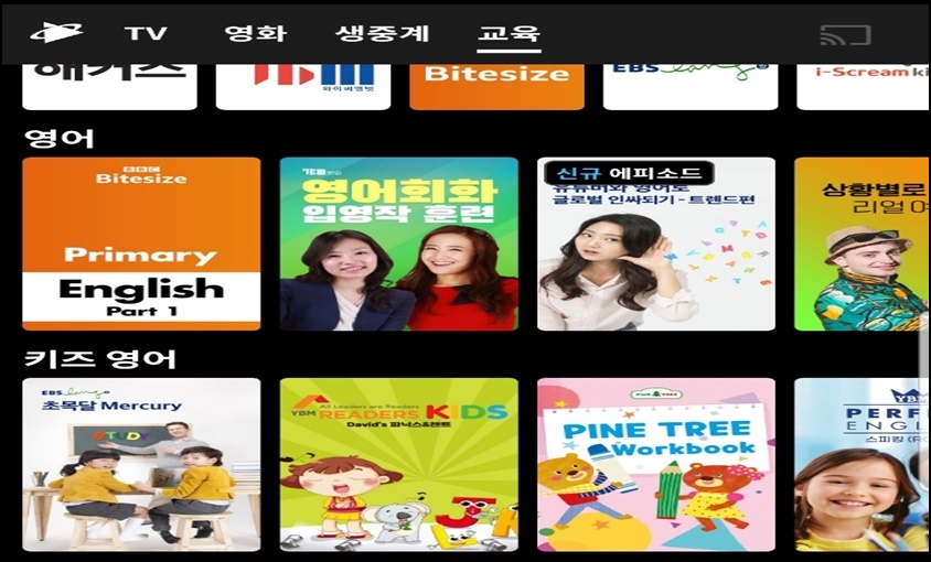 교육 관련 탭도 있어 콘텐츠 분류에 대해서는 나쁘지 않은 것 같아요. 다만, 오래된 영상들이거나 그 숫자가 많이 부족해 이용의 선택의 폭이 좁은 건 어쩔 수 없을 것 같네요.