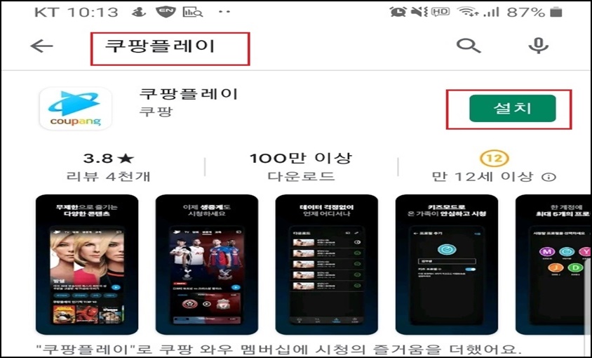 우선 여러분의 스마트폰에서 [플레이 스토어]를 실행 후 쿠팡 플레이를 검색하여 설치를 진행해주세요.