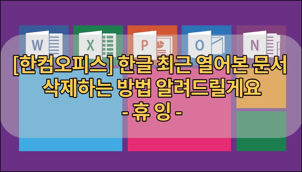안녕하세요 오늘도 휴잉의 블로그를 찾아주신 여러분 감사드려요. 오늘 제가 포스팅할 내용은 "한글 최근 열어본 문서 삭제하는 방법"에 대해 포스팅 해보려고해요. 여러 한글 파일 문서를 작업하다 보면 최근 열어본 문서 기능을 통해 최근 작업 문서를 따로 찾지 않고 바로 불러와 사용할 수 있는 장점도 있는 반면 여러 명이 사용하는 PC의 경우 보안상의 문제로 인해 삭제를 해주시는 게 좋아요. 예전에 엑셀 열어본 문서 삭제하는 방법에 대해 포스팅한 적이 있는데, 이번에는 한글에서 최근 열어본 문서 목록을 삭제하는 방법에 대해 설명드릴게요.