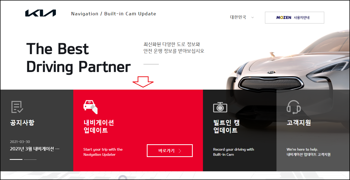 기아 - 내비게이션 업데이트 공식 홈페이지에 오신것을 환영합니다. 내비게이션 업데이트로 최신화된 다양한 도로 정보를 누려보십시오