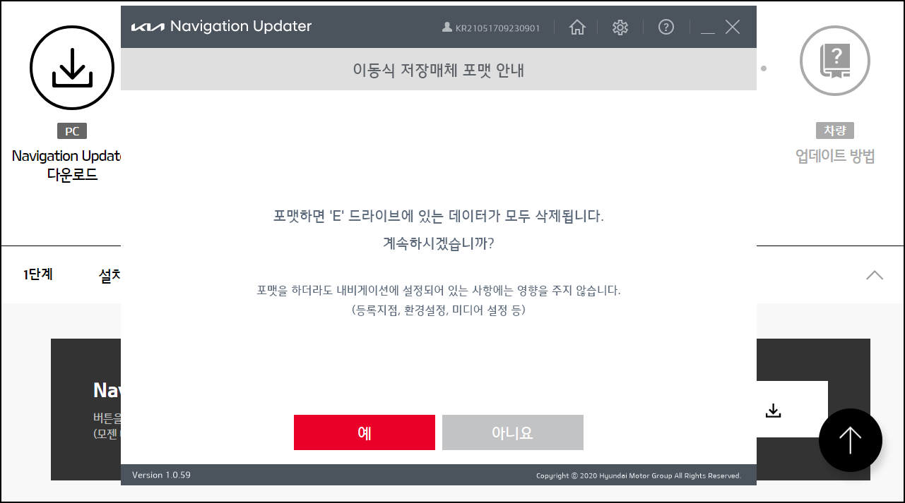 업데이트를 진행하면 "포맷하면 'E'드라이브에 있는 데이터가 모두 삭제됩니다. 계속하시겠습니까?"라는 메 세직 나올 텐데 못 먹어도 고!! [예]를 선택해서 넘어가 주세요.