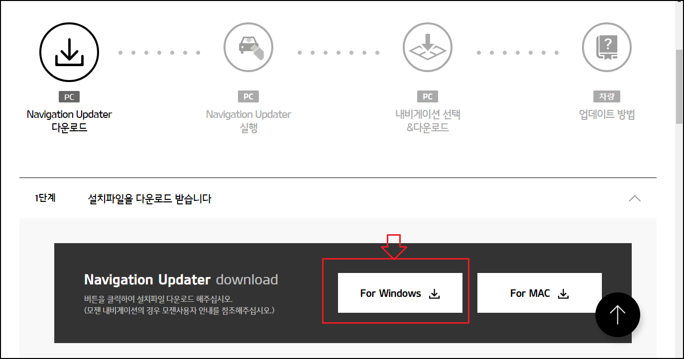 내비게이션 업데이트를 하기위해선 프로그램을 설치해야 돼요. Windows or MAC 각각 OS에 맞는 것을 선택하여 다운로드를 진행해주세요.