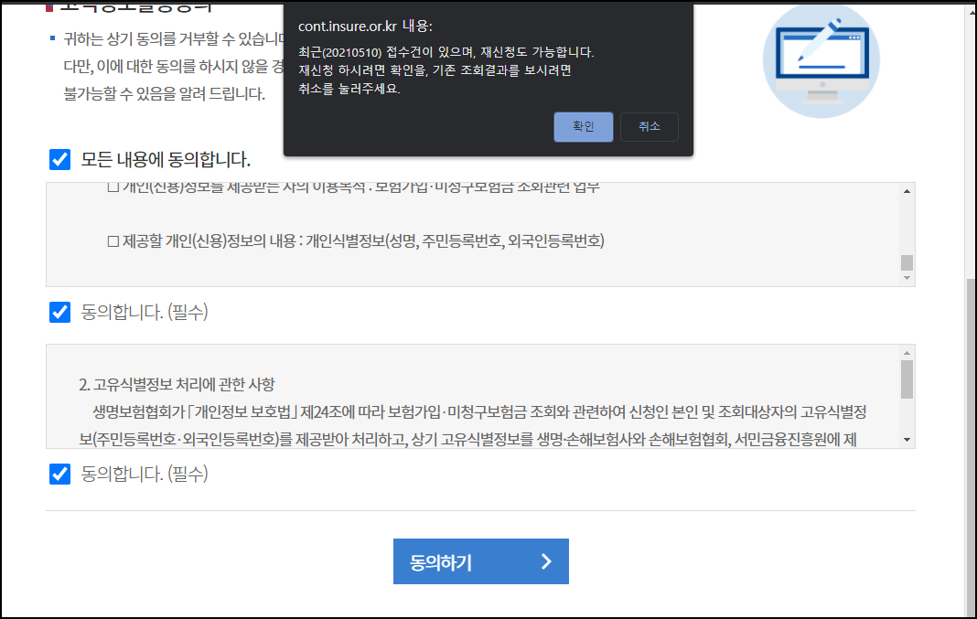 정보 활용 동의하기 내용을 읽어보시고 [동의하기]를 클릭해주세요.