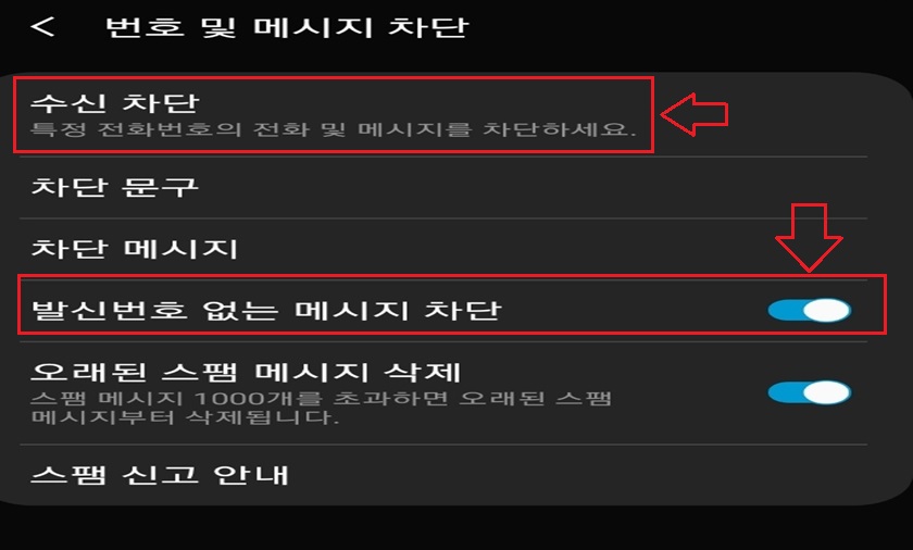 스팸 성문자를 받은 경우 받은 메세 지함을 통해 차단하거나 직접 연락처를 입력하여 차단할 수 도 있어요.