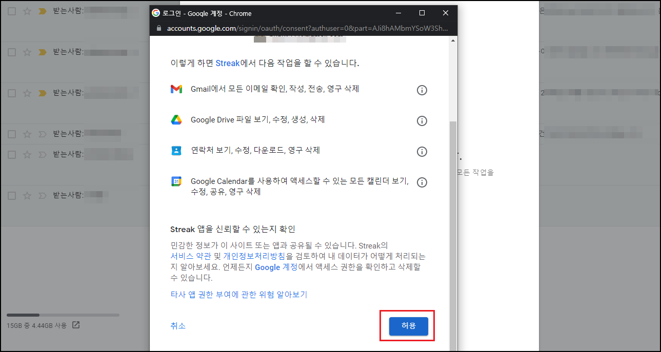 별거 없는 내용이니 [허용] 버튼을 클릭하여 넘어가 주세요.