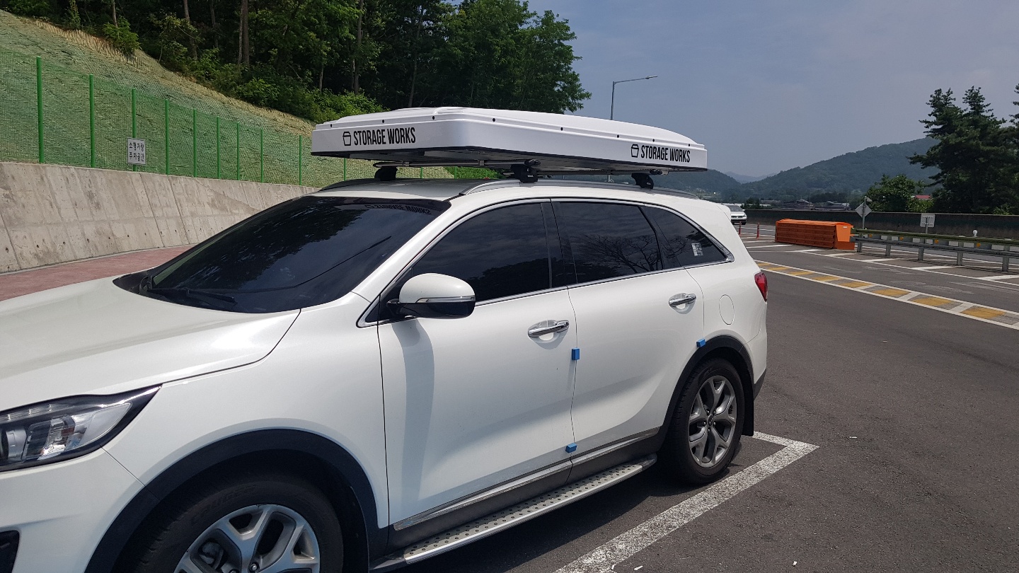 설치를 하고 집에 가던 길에 졸음쉼터에서 찍어봤어요. 루프탑텐트 하나 올렸다고 이미지가 정말 달라졌어요^^.