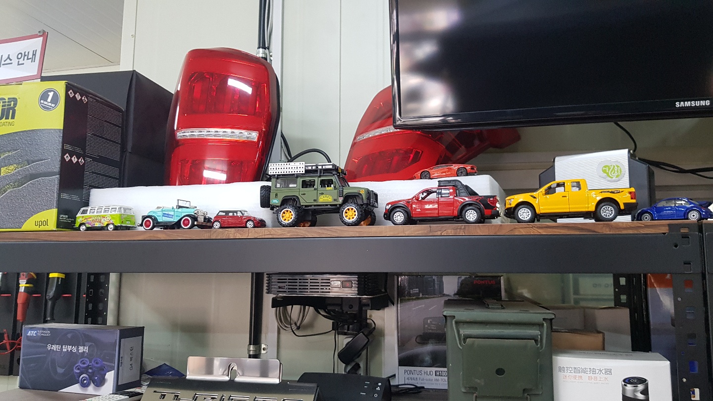 설치 준비를 하는 동안 사무실 내부를 둘러봤어요. 자동차 미니어처들도 진열해놓을셨고~