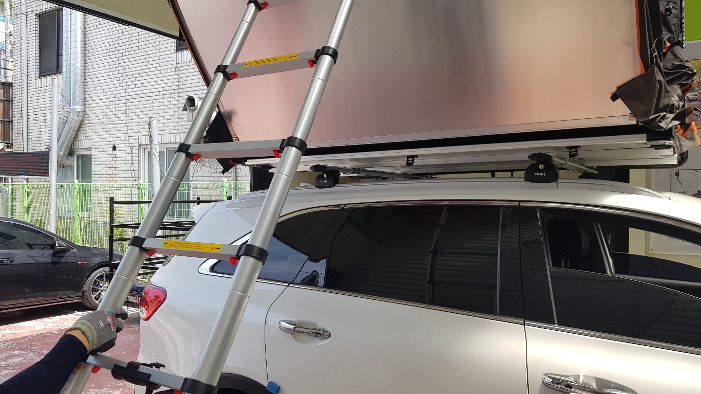 루프탑 뚜껑을 열어젖힌 후 사다리를 빼주시면 끝!!