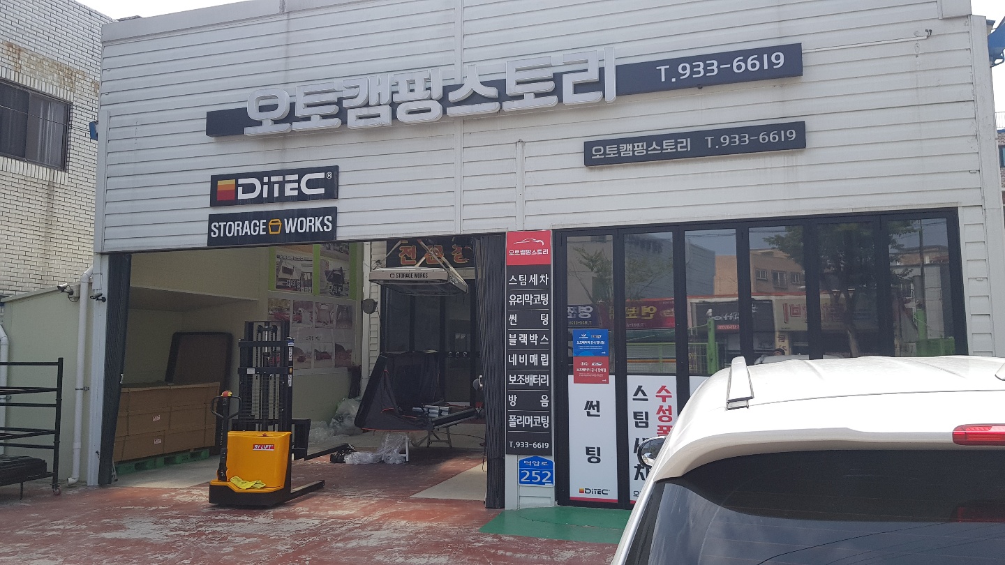 제가 설치할 곳은 대전에 위치한 "오토캠핑 스토리"라는 곳이에요. 제 지인도 여기서 설치해서 추천을 받아서 예약 후 방문하게 되었어요. 대부분 스토리지웍스 루프탑텐트의 색상을 검은색으로 많이들 하시는데, 제 차가 흰색이다 보니 흰색 루프탑텐트를 원했는데, 흰색 제품은 희귀하기도 해서 바로 설치는 불가능하고 몇 주간의 예약 일정을 통해 설치 여부를 알 수가 있어요. 저도 약 3주 정도 예약 후에 설치할 수 있게 되었는데, 딱! 한 개를 공수할 수 있어 어렵게 설치하게 되었어요^^.