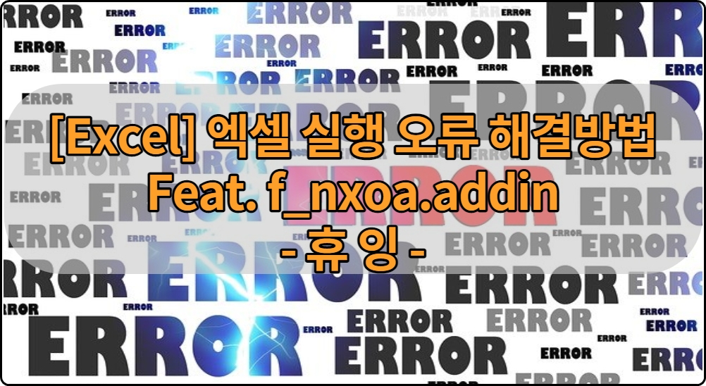 안녕하세요 오늘도 휴잉의 블로그를 찾아주신 여러분 감사드려요. 오늘 제가 포스팅할 내용은 "[Excel] 엑셀 실행 오류 해결방법 Feat.f_nxoa.addin"에 대해 설명드릴려고해요. 얼마 전 PC를 통해 MS Office 문서작업을 하려고 하는데 제목과 같은 메시지와 함께 엑셀이든 파워포인트든 office 프로그램이 실행되지 않고 꺼지는 현상을 발견했어요. 오피스 프로그램도 몇 번이나 지워보고 다양한 테스트를 해봤지만 아무 소용없었는데 알고 보니 원인이 아주 간단하더라고요. 혹시나 저와 같은 메시지로 인해 office 프로그램이 실행되지 않아 고민이신 분들에게 도움이 되길 바라 본 포스팅을 작성해봐요.