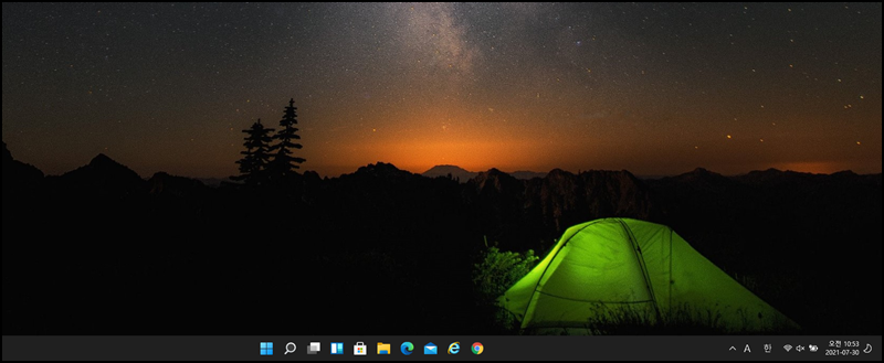 짜잔!! 업데이트하여 부팅된 윈도 11이에요. 작업표시줄 아이콘들이 모니터 가운데로 몰려있네요.
