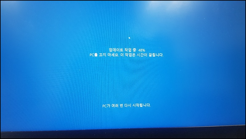 재부팅하시면 업데이트 작업 중이니 여러분 PC가 꺼졌다 켜지니 부팅이 다될까지 기다리시면 돼요.