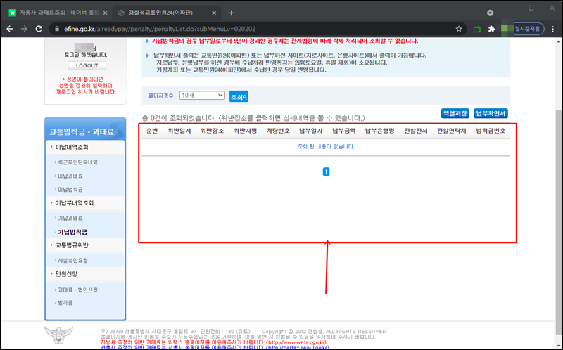 다행히 미납된 범칙금은 없네요^^.