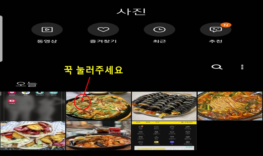 여러 사진들이 있으실 텐데 콜라주 만들고 싶은 사진 하나를 꾸~~ 욱 눌러주세요.