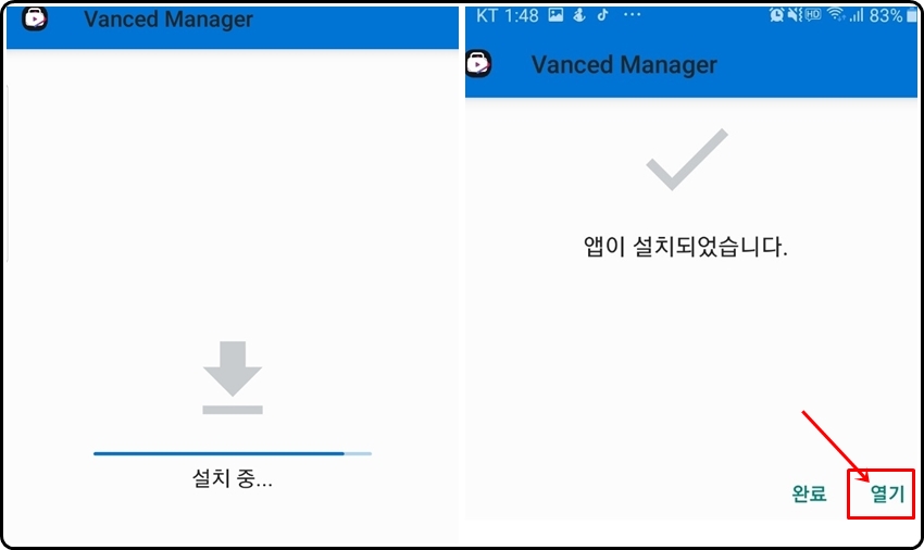 설치는 금방 되실 거예요 잠시만 기다려주신 뒤 앱이 설치가 되면 [열기]를 클릭해주세요.