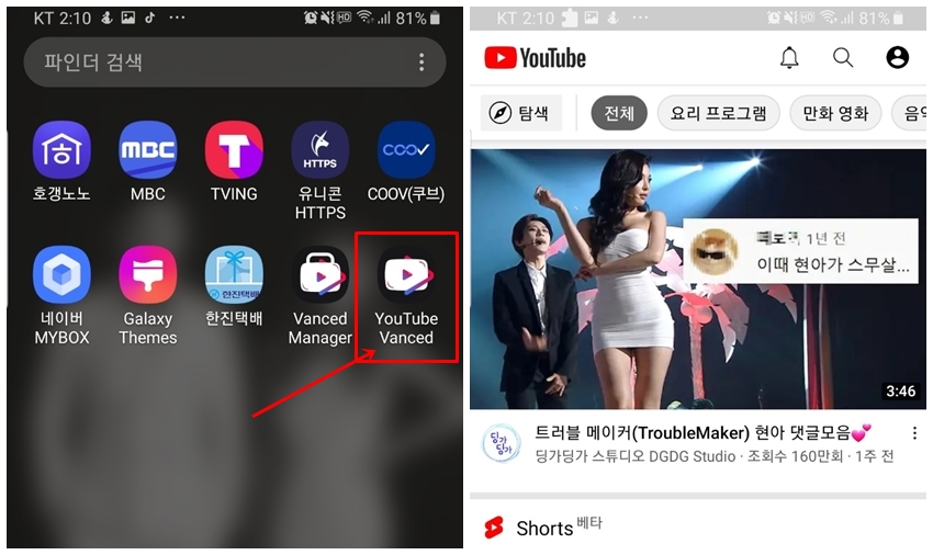 설치가 끝나면 스마트폰에 YouTube Vanced 어플이 생성되었을 거예요. 클릭해서 들어가시면 광고 없는 세상의 유튜브를 즐기실 수 있을 거예요^^.