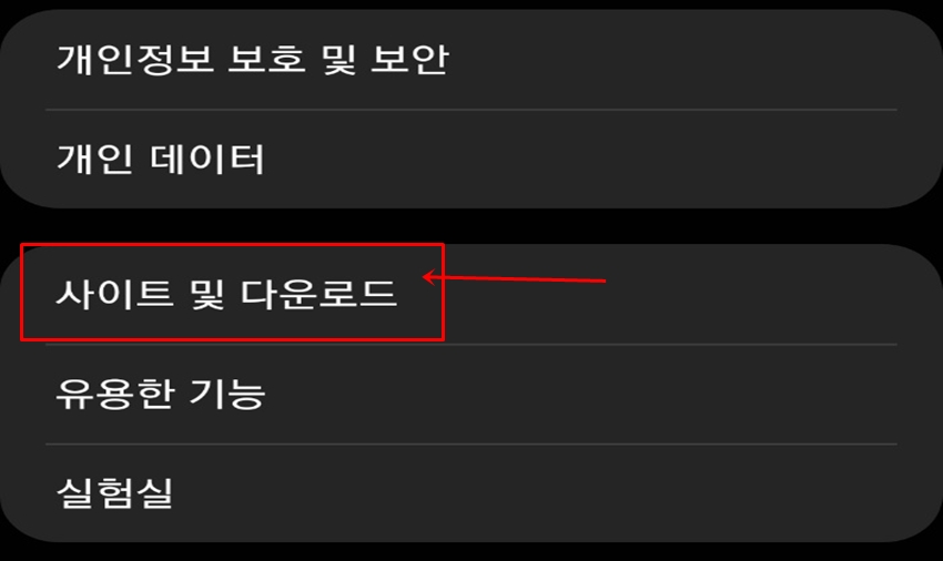 스크롤을 중간쯤 내리셔서 [사이트 및 다운로드]를 찾아 클릭하여 들어가 주세요.
