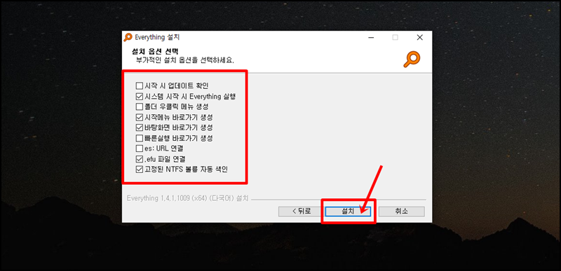 부가적인 설치 옵션 부분인데 딱히 건들 필요 없이 [설치] 버튼을 클릭해주세요.