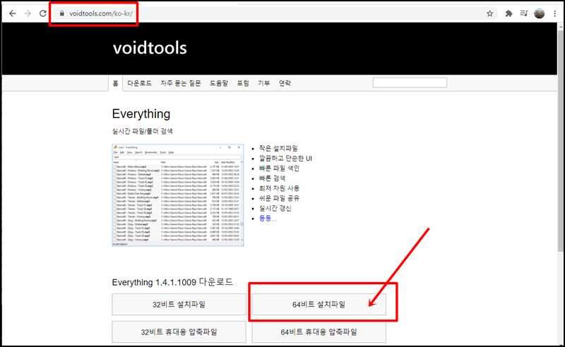 위 링크를 클릭하여 voidtools 홈페이지로 이동을 해주세요.