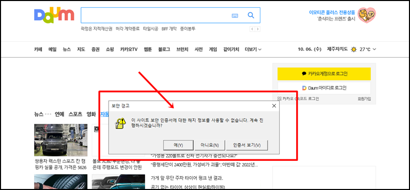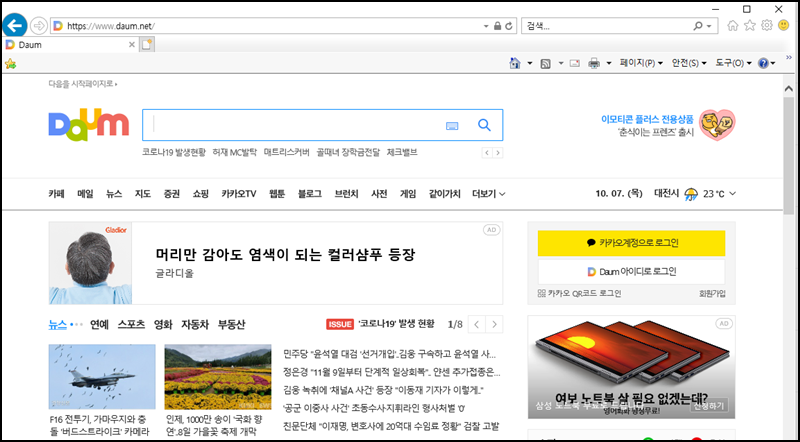 익스플로러를 종료 후 재 실행하시면 위 사진과 같이 이상 없이 접속이 되실 거예요.^^ 참 쉽죠
