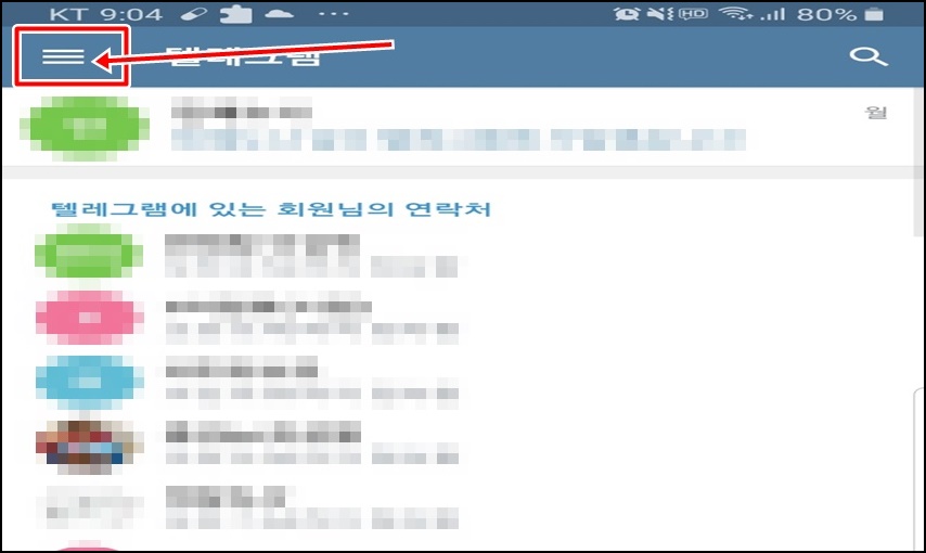 자! 우선 텔레그램을 실행후 메인 페이지 왼쪽 상단의 三 메뉴 버튼을 클릭해주세요.