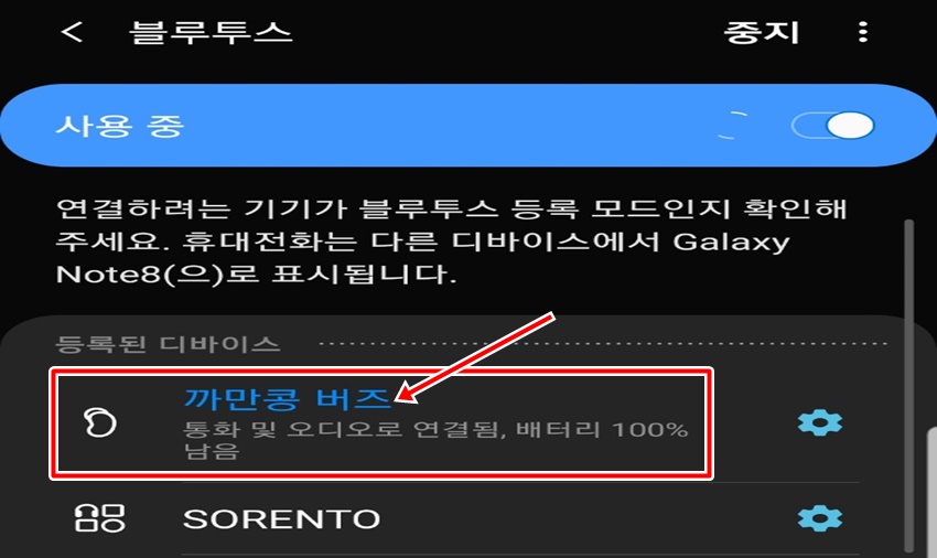 연결의 저의 버즈 "까만콩 버즈"로 변경이 되었어요^^.