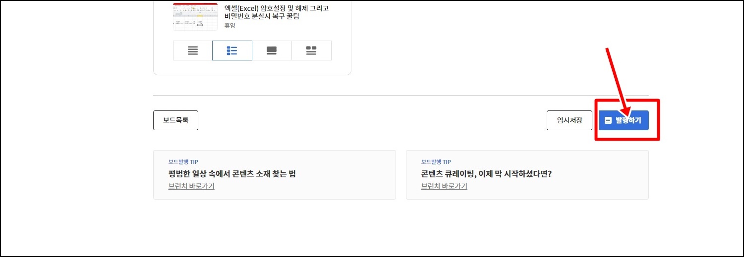 티스토리 글을 담으셨다면 하단의 [발행하기] 버튼을 클릭해주세요.