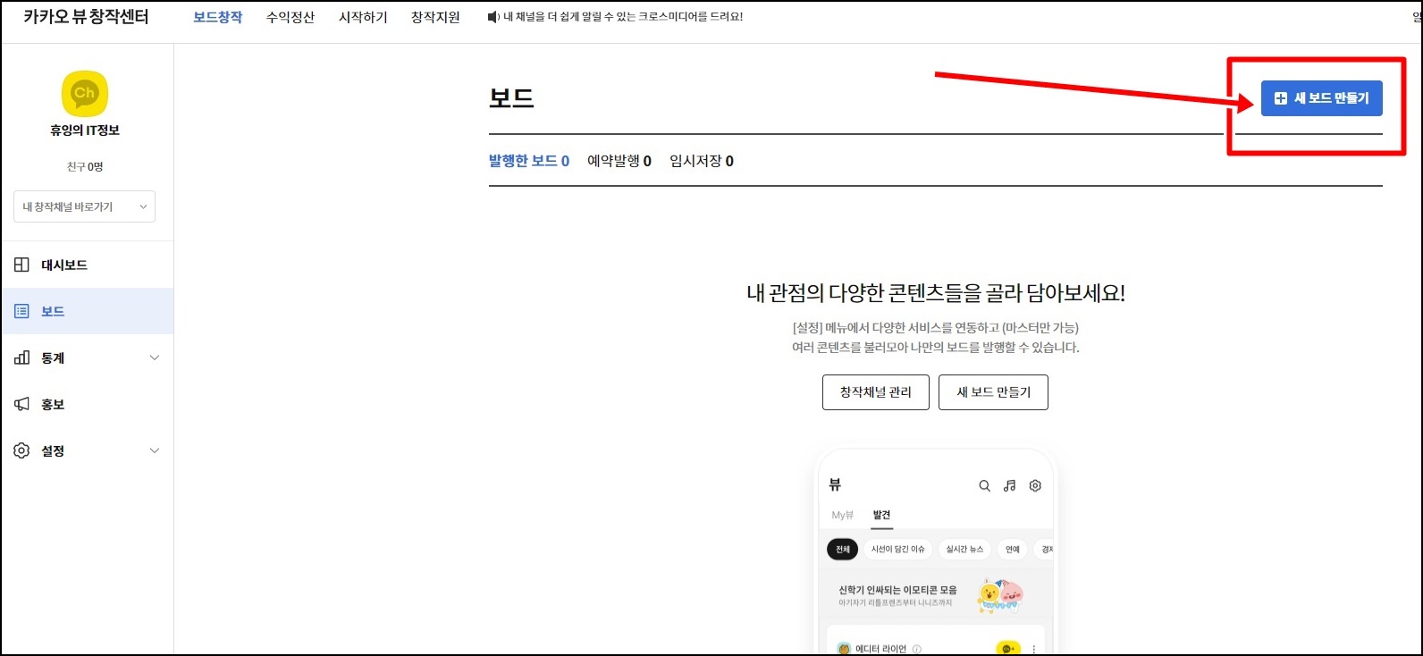 다시 보드 장착으로 넘어오셔서 [새 보드 만들기]를 클릭해주세요.