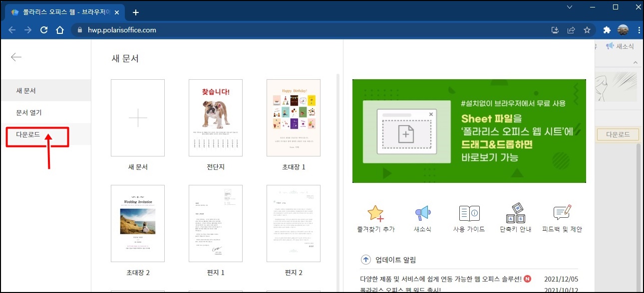 위 링크를 클릭하시면 "폴라리스 오피스 웹"홈페이지로 이동하게 됩니다.