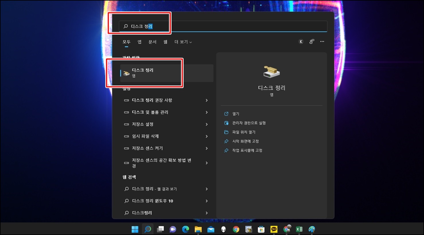 세 번째는 "디스크 정리"에요. 디스크 정리 앱을 실행해주세요.