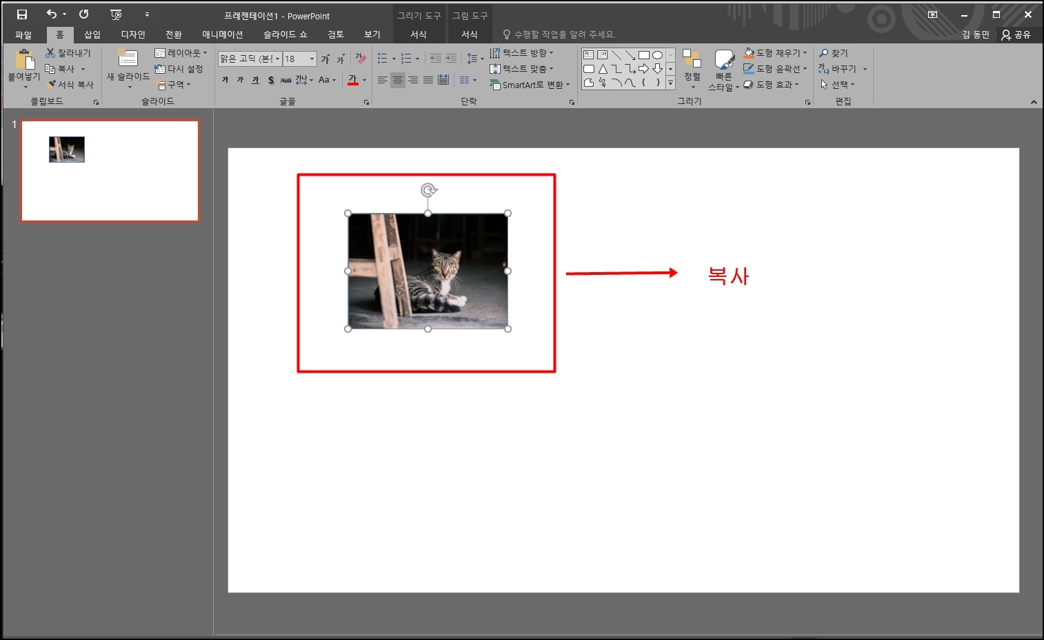 이렇게 첫번째 사진이 넣어지면 해당 도형을 복사하여 똑같이 만들어주세요.