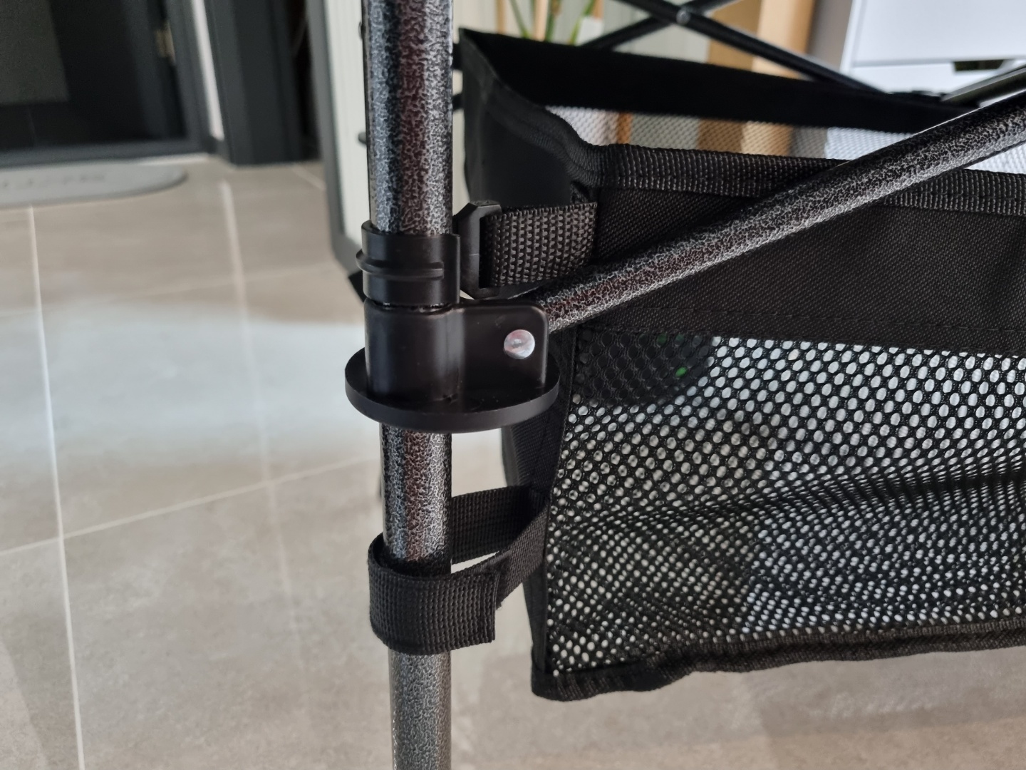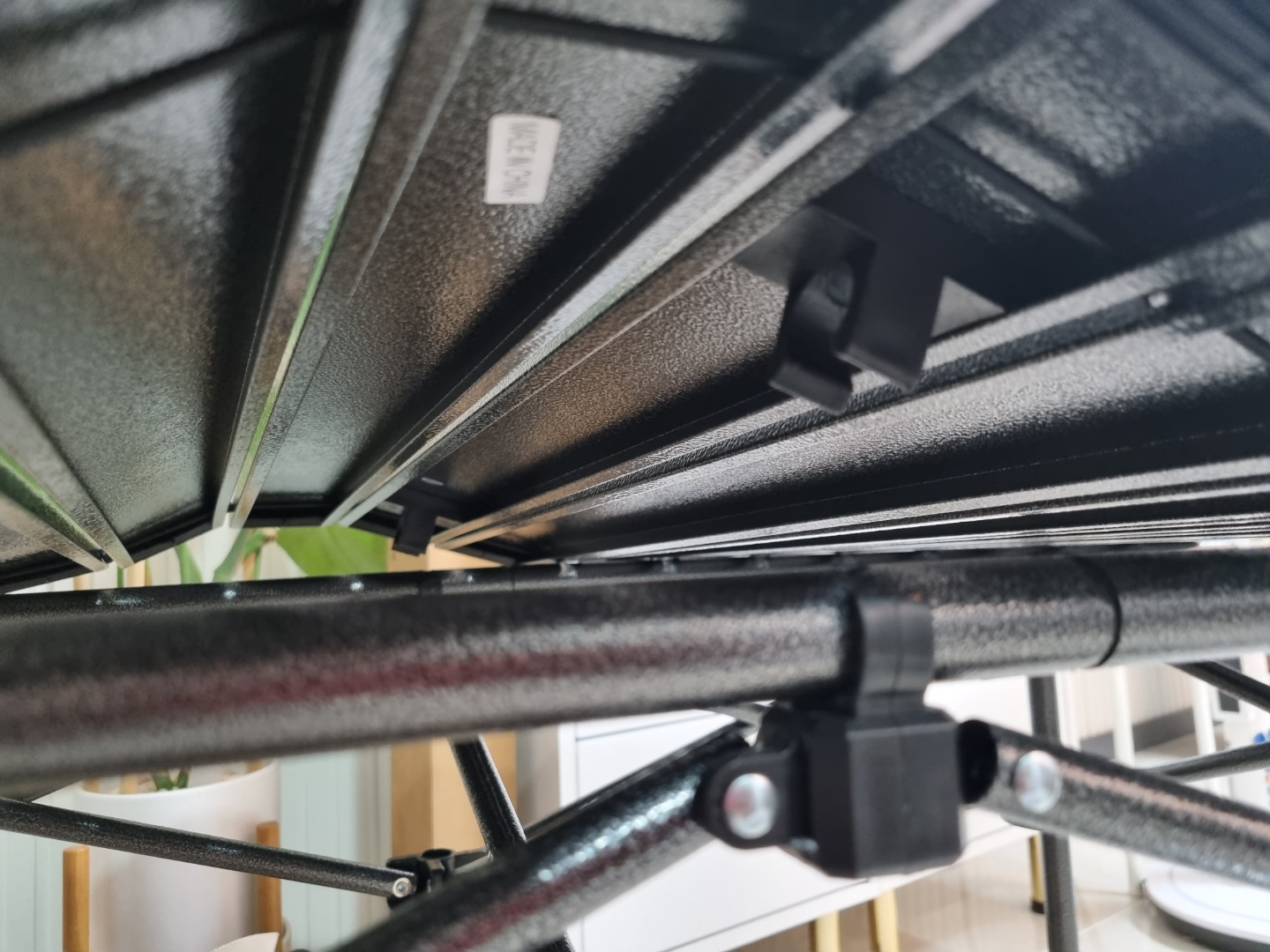 짜잔!! 설치가 완료된 모습이에요. 색깔도 검은색이라 심플하고 의자도 검정색이라 정말 잘 어울릴 것 같아요. 빨리 캠핑 떠나고 싶네요^^. 이제 아이스박스만 블랙으로 맞추면 올블랙 캠핑 콘셉트 완성!!! ^^