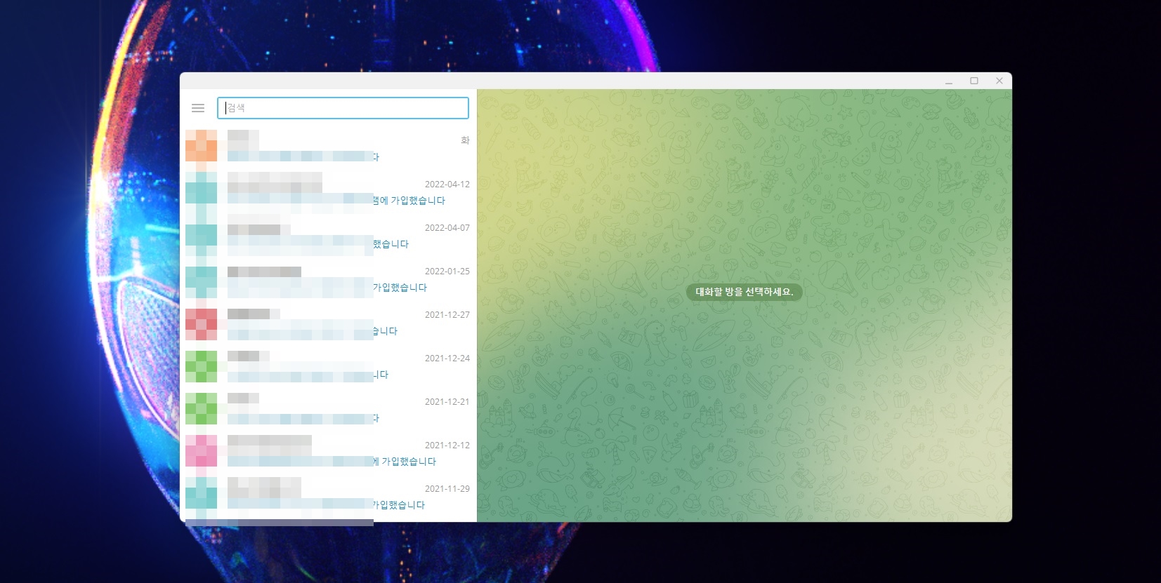 짜잔!! 위 사진처럼 PC텔레그램이 로그아웃이 되었어요. 오늘은 이렇게 PC텔레그램 원격 로그아웃하는 방법에 대해 설명드렸는데, 만약 PC 원격 로그아웃 방법을 찾는 분이 계시다면 위 방법을 따라 해 보시면 좋을 것 같아요. 오늘 포스팅이 여러분들께 유익한 정보가 되었길 바라며 오늘 포스팅은 이만 마치도록 할게요. 그럼 지금까지 휴잉이었습니다. 감사합니다^^.