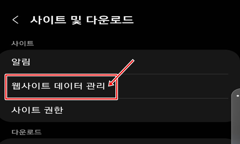 [웹 사이트 데이터 관리] 메뉴로 들어가 주세요.